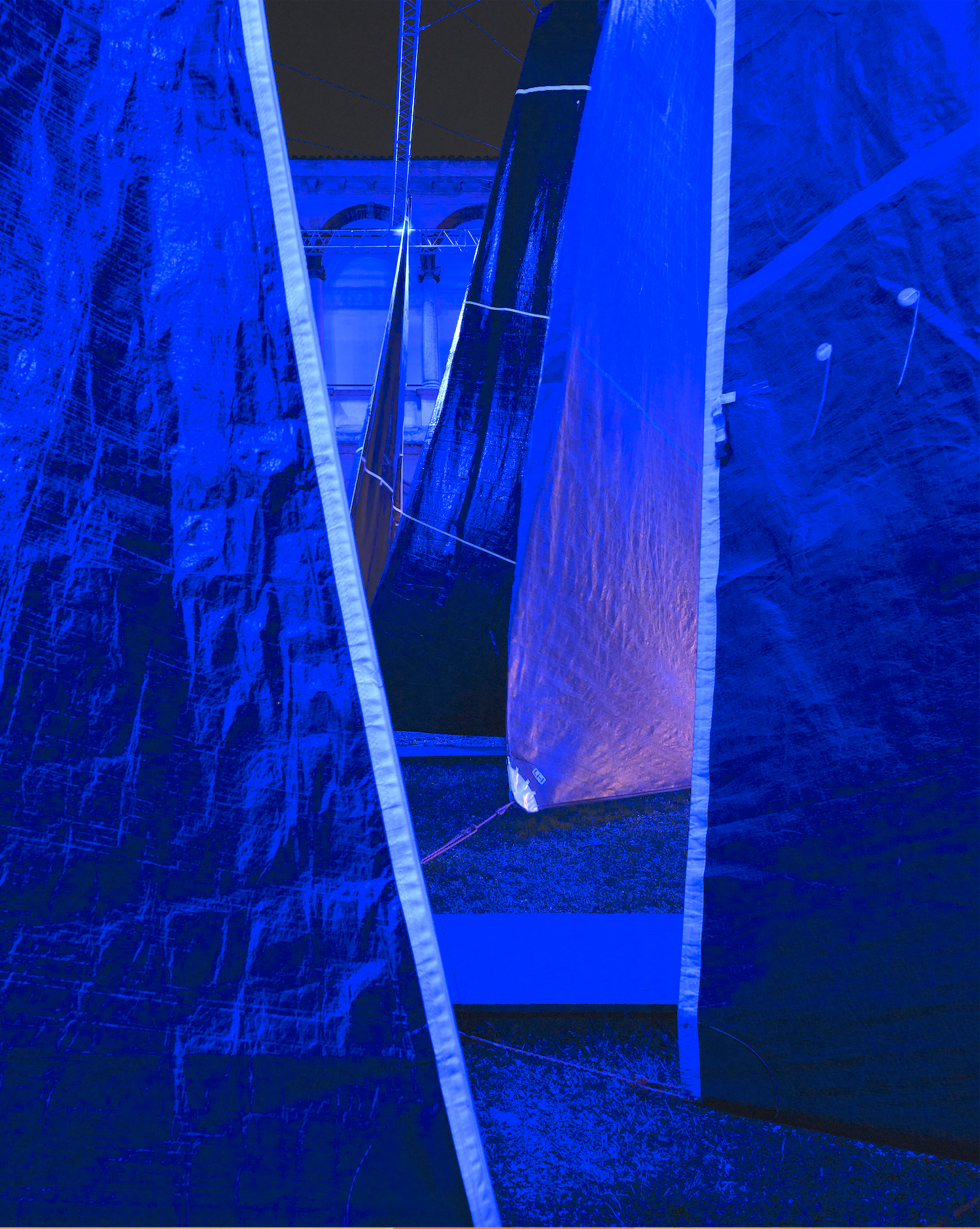 The installation takes the form of a walkable labyrinth, constructed from discarded sails that once graced