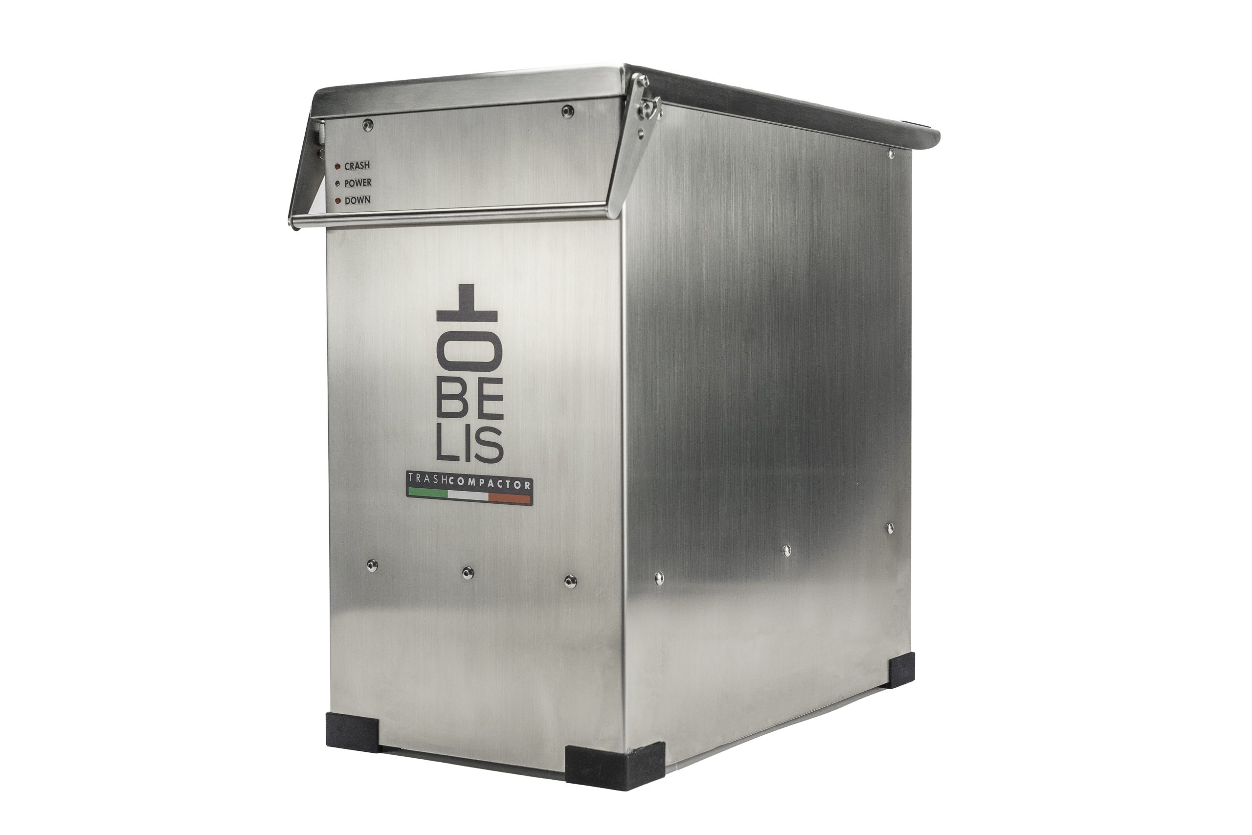 Obelis’ solution is a compact, quiet, and low energy consumption appliance that – thanks to its small dimensions – takes away very little space. Easy to install and use, it works with standard plastic bags. Its crushing power guarantees a reduction in waste volume by more than 70%.