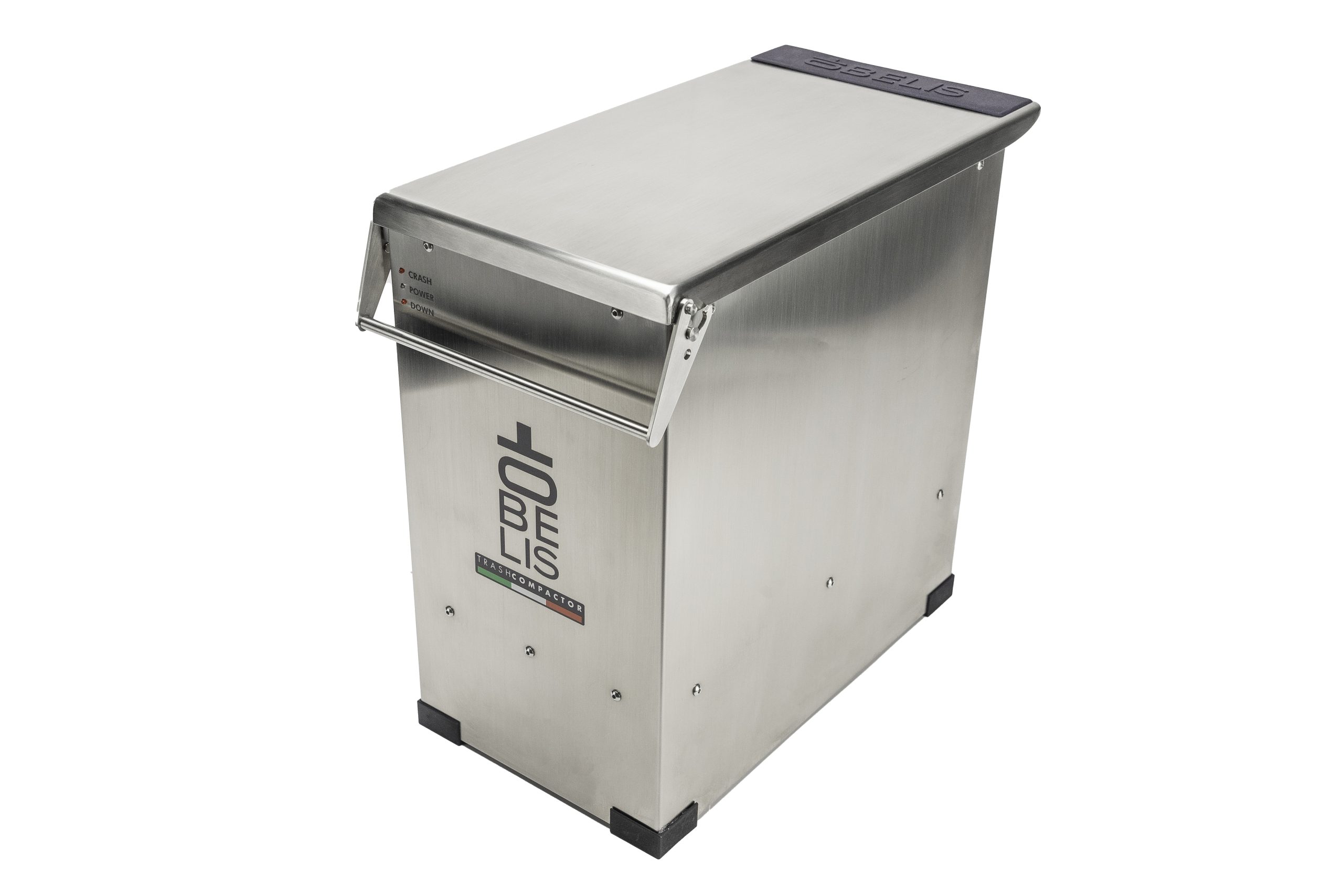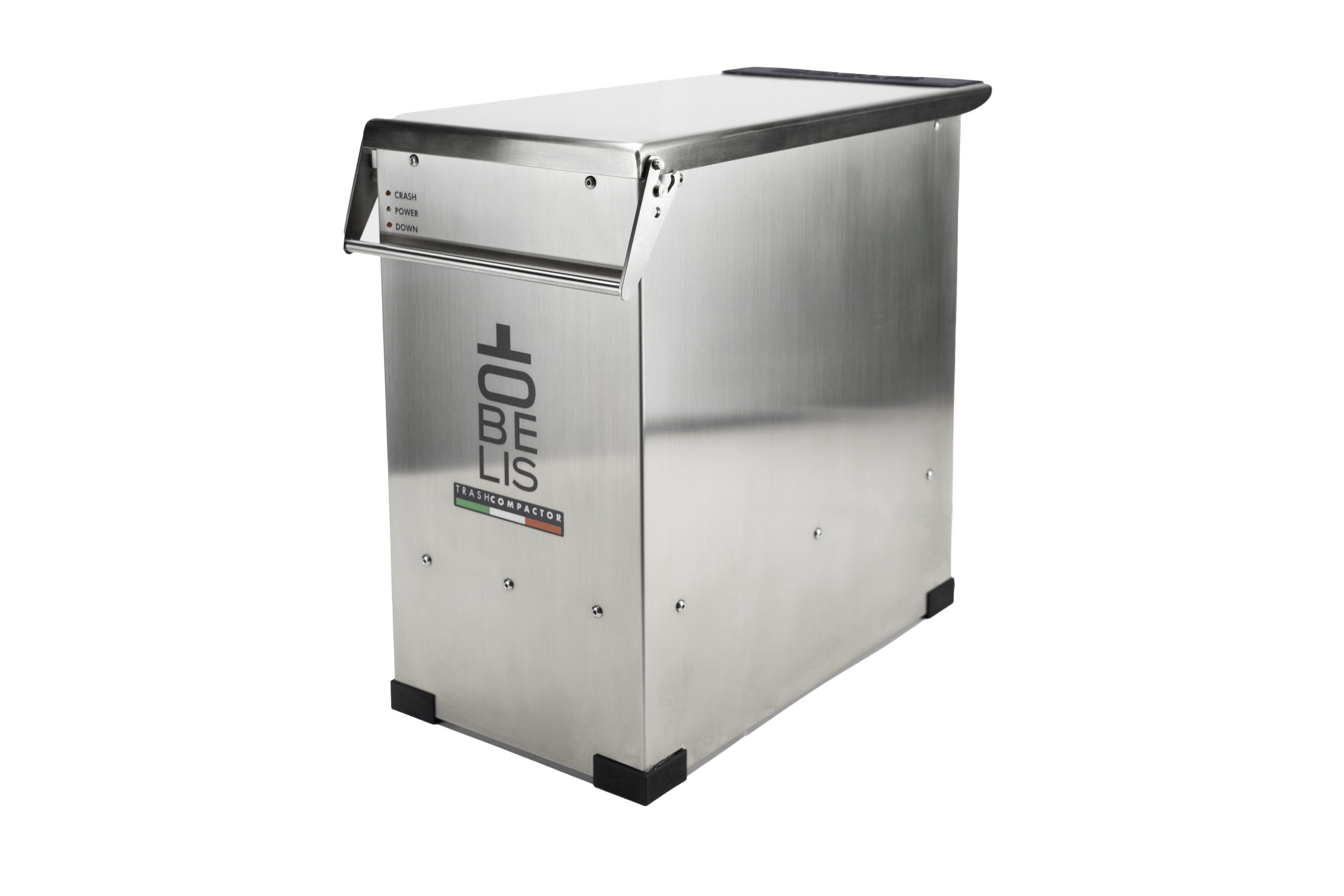 Obelis’ solution is a compact, quiet, and low energy consumption appliance that – thanks to its small dimensions – takes away very little space. Easy to install and use, it works with standard plastic bags. Its crushing power guarantees a reduction in waste volume by more than 70%.
