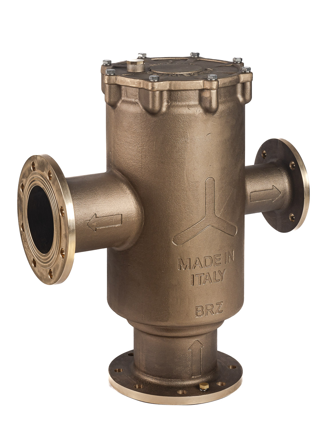 This bronze water strainer for yachts is particularly suitable for those boats that require high volumes of strained seawater for technical purposes, but for constraints in the engine room cannot easily accommodate an independent strainer for each water line.