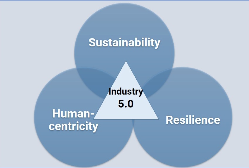 Industry 4.0 represented the transition to automation and digitalization. In contrast, Industry 5.0 is a cultural revolution, not just a technological one. The concept of Industry 5.0 first appeared in 2015 in a Linkedin article by Michael Rada, a business executive. In his article, Rada emphasized the importance of restoring the environment and people in the industrial process (Fig. 1).