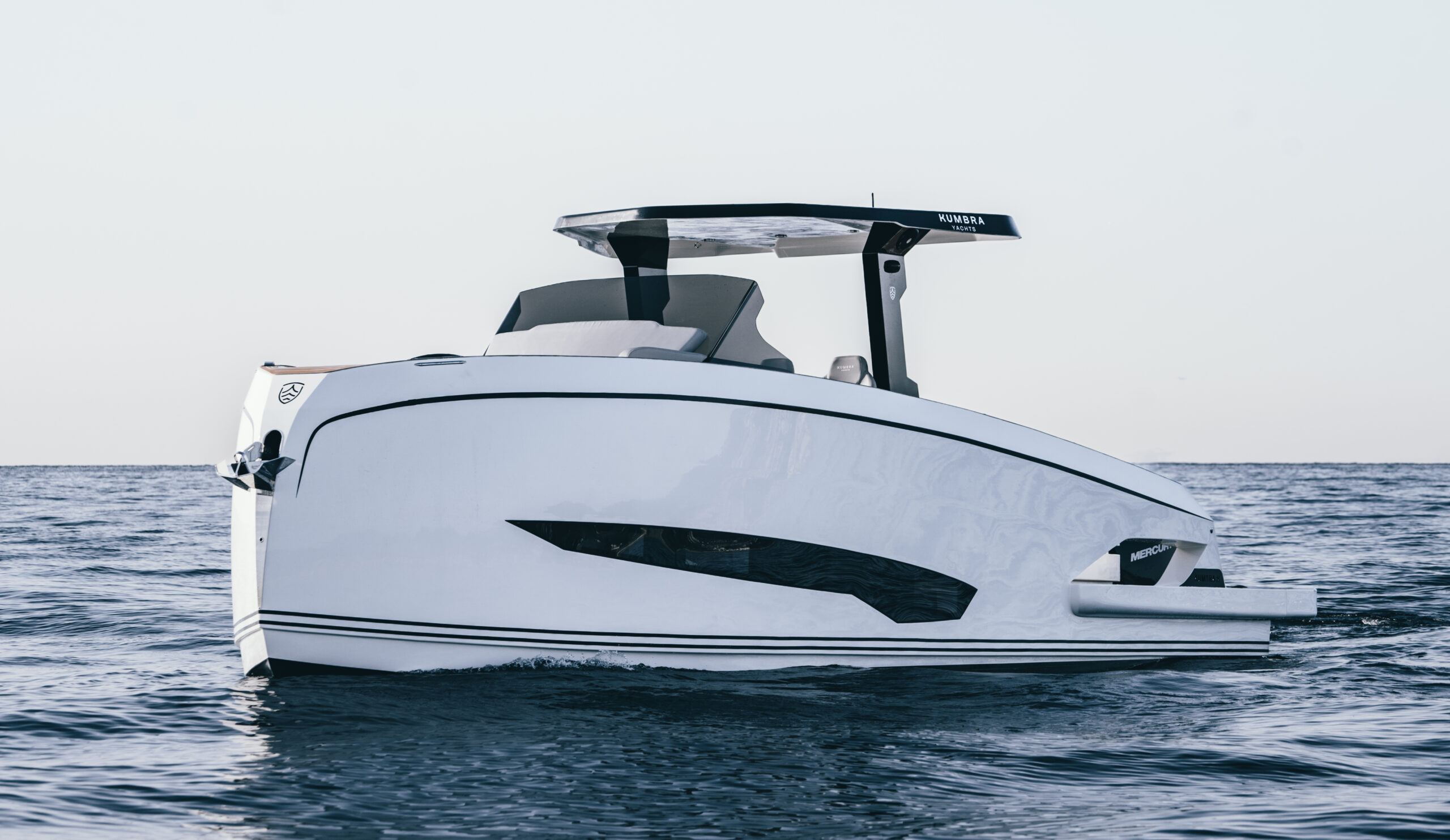 The Kumbra 34 luxury day boat is the first model in a range that will soon be expanded with a 36-footer. Measuring 9.72 m in length and 3.5 m in beam, it embodies the company’s vision: creating boats that offer both elegance and performance.